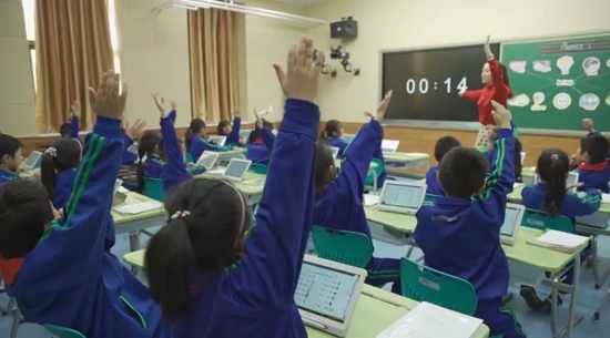 當每個孩子都能受到關注后,張婷婷老師的數學課上也出現了令人動容的一幕:有個學生,以前無論老師怎么鼓勵他,他基本都很難開口回答問題。但自從人手有一個小平板后,他也會積極地把自己的想法寫下來,并通過傳屏功能傳到大屏上去。