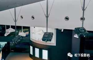 展區內緊密懸掛的投影機的機身根據天花板的顏色分別使用了白色和黑色,與使用環境相得益彰。因為墻面和天花板也是傾斜的,每一臺投影機安裝的高度和角度都不相同。為此,松下的工作人員在施工期間細致地進行了3D模擬。