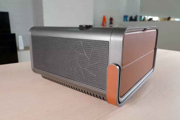后面是優派X10-4K的點睛之筆,一整塊的皮質磁吸式保護蓋,不僅可以隱藏后側的眾多接口,更是加強了后側的一體性。暗黃色的皮革也有了幾分不一樣的質感,摸上去的那瞬間,完全沒有金屬冷冰冰的觸感。