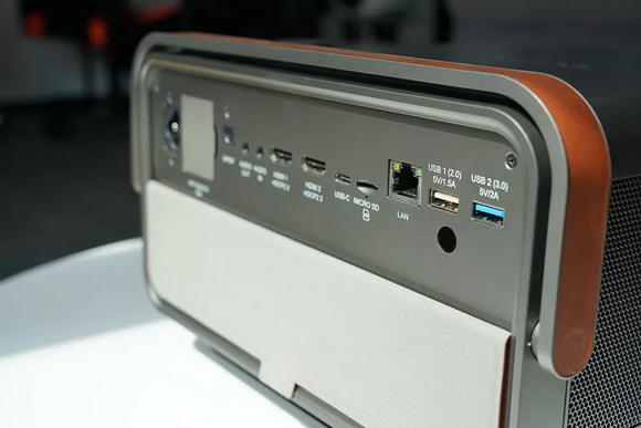 優派X10-4K接口豐富,除了傳統的音頻輸入、輸出口,兩個HDMI接口,MICRO SD,兩個USB-A接口外,還有目前主流的USB-C口,C口可以兼容目前的手機、平板、Swtiich等移動設備。除此之外,優派X10-4K的網絡連接即可有線也可無線,分別滿足不同的使用場景。無線網卡是外置可更換的USB網卡,這也是方便后續的升級。