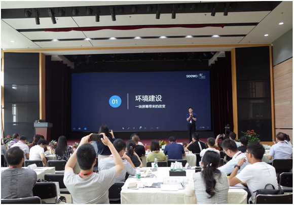 對于未來校園建設(shè),陸校認(rèn)為,應(yīng)踏實(shí)從當(dāng)下做起:“未來智慧校園的建設(shè),需要當(dāng)下的行動做支撐,沒有當(dāng)下的行動,就沒有未來的學(xué)校。” 交互式多媒體設(shè)備在未來校園的應(yīng)用 教育信息化進(jìn)入2.0時(shí)代,對基礎(chǔ)建設(shè)項(xiàng)目的深入推進(jìn)和全面覆蓋提出了更高的要求。希沃方案整合中心的劉少軒與老師們共同探討在教育信息化2.0的趨勢下,我們應(yīng)如何通過交互多媒體設(shè)備賦能未來校園。