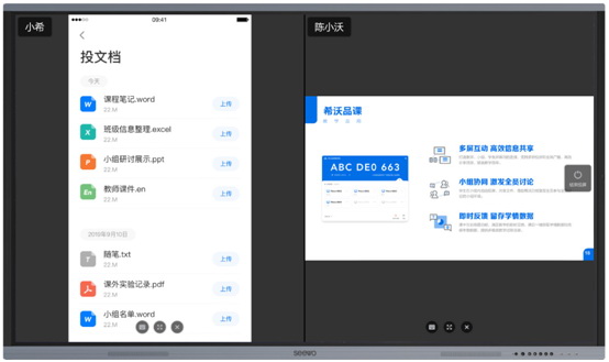 希沃品課多屏互動方案延續了希沃產品一貫簡單易用的原則,從教學內容同步、探討內容共享、實時互動,到學情數據反饋的全課程流程,我們力求讓師生的操作使用盡可能簡單,因為我們相信工具的簡單易用,就是老師的效率提升。