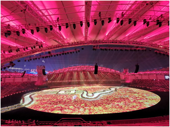從開場的倒計時、歷屆軍運會回顧到最后的文藝演出,這些都離不開高要求的投影技術。憑借雙色激光光源、4K超高清分辨率,巴可UDX-4K40圓滿完成了演出任務。