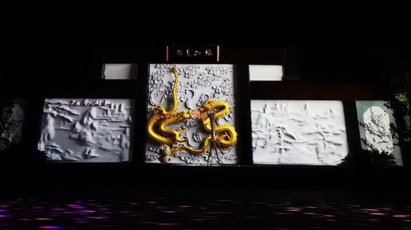 由NEC工程投影機 PH3501QL+打造的“照壁”,每天晚上6時許開場播放8分鐘“盤根化龍”光影秀,通過投影機技術讓播放內容與照壁融為一體,呈現精彩的時光穿梭機,帶你體驗具有悠久歷史的中國傳統文化,享受科技之美。
