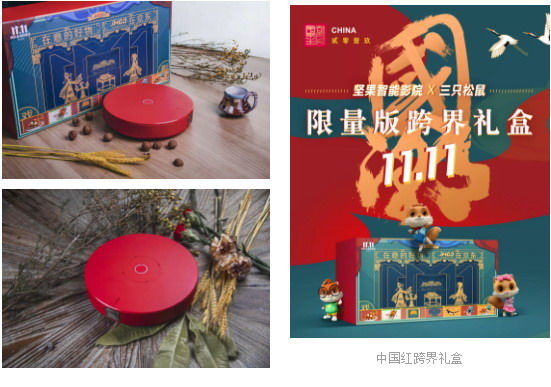 堅果團隊打造了華誕70周年限定款1080P投影儀,并與三只松鼠共同打造限定版禮盒,吃堅果看堅果,從口感到眼觀,將人在觀影時需要的感受也形成了閉環。