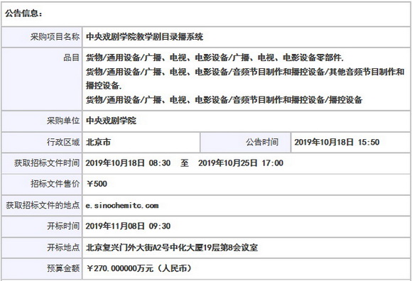 采購項目名稱: 中央戲劇學(xué)院教學(xué)劇目錄播系統(tǒng)