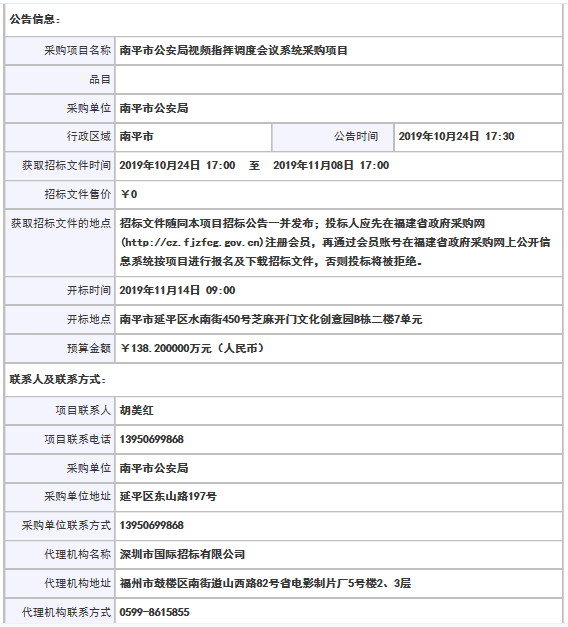 采購項目名稱: 南平市公安局視頻指揮調度會議系統采購項目