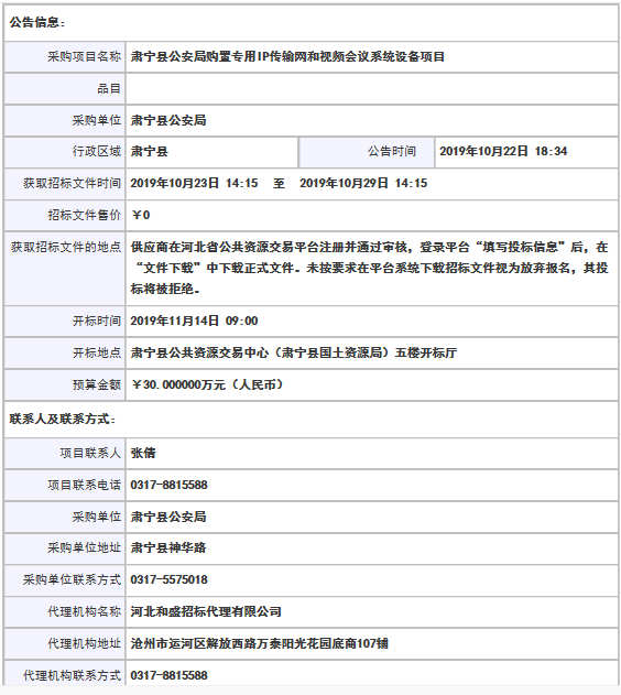 采購項(xiàng)目名稱: 肅寧縣公安局購置專用IP傳輸網(wǎng)和視頻會(huì)議系統(tǒng)設(shè)備項(xiàng)目