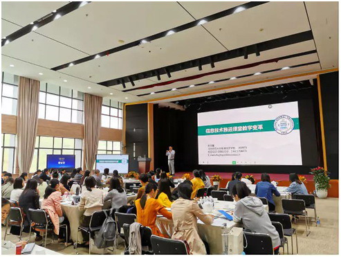 15日上午,朱京曦博士做了《信息技術推動課堂教學變革》的分享,從理論層面強調了生成性、情景化、互動式的生命課堂的重要性,講述了信息化技術應用對“教與學”的方式的改變,并以分享經典信息化教學應用案例的方式強調了互動教學設計的要點,深化了學員們對教學理論與科技融合的認知。