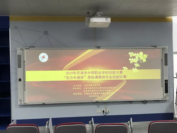 此次“東方中原杯”思政課教師專業技能比賽所用153寸白板一體機+PROPIX派克斯超短焦教育激光投影機解決方案,超短焦、超清大畫面與集電子白板、中控、電腦、功放音響、視頻展臺等多種設備于一體的多媒體智能教學產品——153寸白板一體機結合,不僅擁有豐富的功能,清晰超大的畫面,在操作方面也十分簡單,現場老師對產品的操控自如在課程比賽中演繹得淋漓盡致。