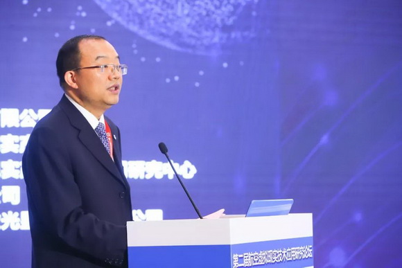▲ 航空工業(yè)上電總工程師劉陽發(fā)表《5G與VR賦能 共創(chuàng)高端裝備新生態(tài)》主題演講