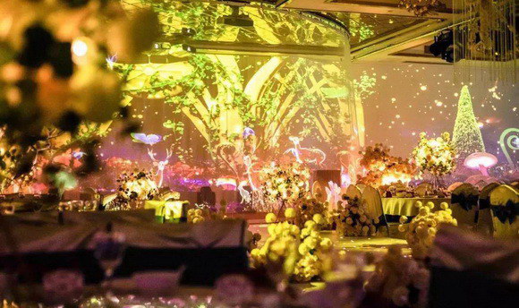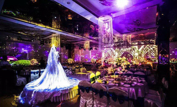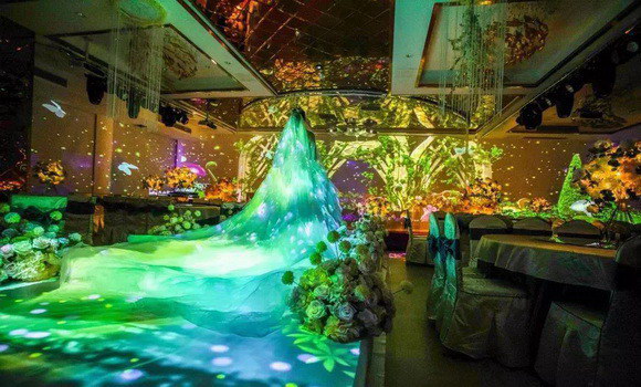 傳統婚禮宴會的布局,為了背景能夠達到變換的效果,通常使用LED屏幕結合布景進行變化。LED屏幕只能展示平面畫面,不足的屏幕尺寸限制了婚慶創意的施展,搭建布景更是需要耗費大量的物力、人力、時間成本。