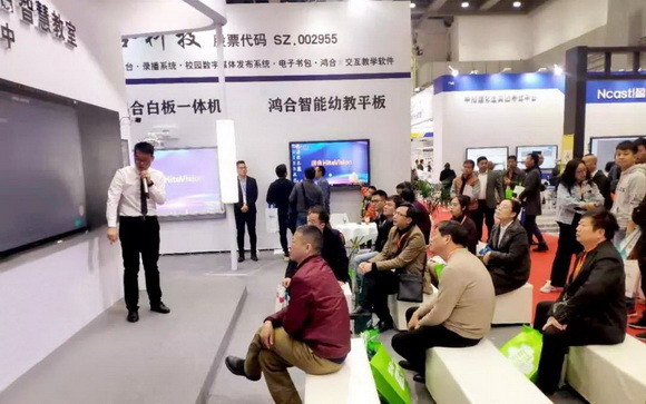 展期亮點:在琳瑯滿目的展品中,鴻合科技的高科技智慧黑板吸引了眾多參觀者的目光。據悉,鴻合智能交互黑板采用全貼合工藝及納米電容觸控技術,在保留粉筆書寫、多人觸控、多媒體教學等功能的同時,還擁有諸多技術創新,比如將色域從72%提升至85%,還原屏幕真實色彩,為學生帶來真實“視界”;新增去藍光護眼功能,為師生打造健康綠色的學習環境。