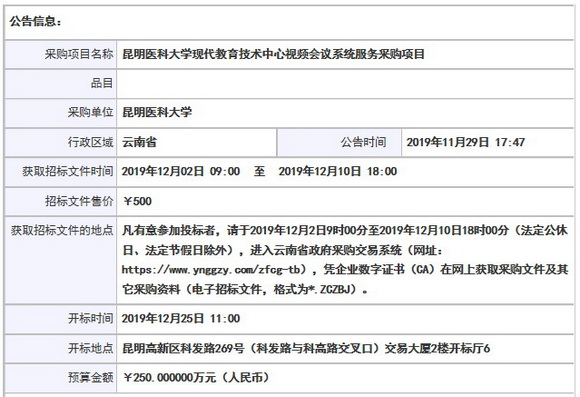 采購項目名稱: 昆明醫科大學現代教育技術中心視頻會議系統服務采購項目