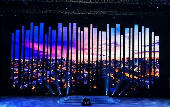 在安裝上,也充分滿足了舞臺設計需求。該屏整體面共計393㎡,采用吊裝的方式,吊裝的屏體垂直長度達到了18米,此等高度超過了平常屏體吊裝極限,而且是在采取鋼結構的方式下完成,安裝和維護都非常具有挑戰(zhàn)性。