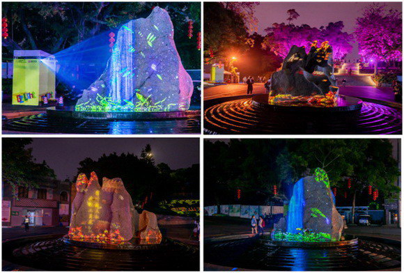 而在白云石燈光秀中,3臺VIVITEK DU8090Z與2枚標準鏡頭和1枚長焦鏡頭配合,結合石頭造型進行光影成像,實現了360度影像覆蓋,觀眾無論從哪個角度觀看,都能感受艷麗的影像及立體效果,通過石上光影,一覽四秀變幻的白云山景像。
