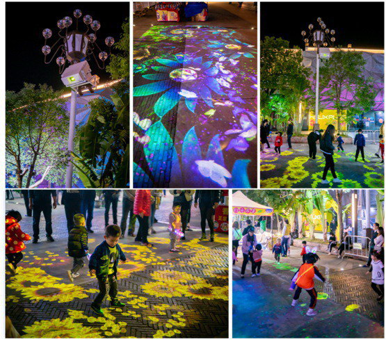而在1978文化創意園中心廣場,最吸引眼球互動式的投影,同樣是Vivitek(麗訊)激光工程投影機來完成。