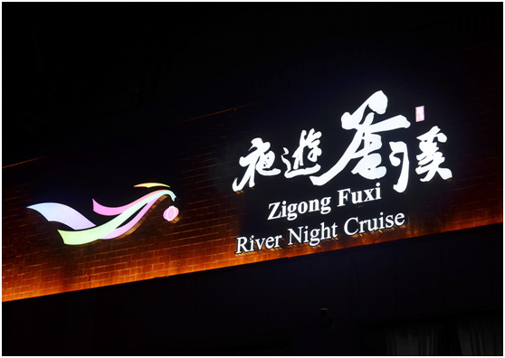 自貢市是川南區域中心城市,享有“千年鹽都”,“恐龍之鄉”,“南國燈城”等美譽。釜溪河是自貢的“母親河”,以“半城青山半城樓,彩燈輝映碧水流”著稱。2019年9月10日,在四川國際文化旅游節暨第二屆自貢國際恐龍燈光節開幕之際,“夜游釜溪”正式啟動,6.2公里的“一河三彎四段二十四景”,用光影技術讓游客沉浸在歷史與文化中,創造一個永不落幕的“燈會”。