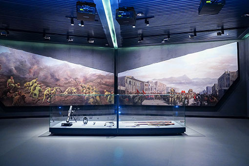 “風云際會、前仆后繼”展項通過半景畫場景,結合定制影片,重現福州戰役的重要一幕。該展項中索諾克SNP-LU6600激光工程投影機以其高亮度和高對比度效果投射的生動逼真的硝煙炮火結合半景畫場景精彩再現新中國的誕生歷史。