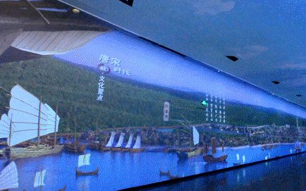 首先,“時空隧道”其實就是行人通道,墻面的顯示畫面光路不能穿過人群,否則會給展示畫面形成遮擋;其次,為了配合“時空隧道”的整體性和美觀性,投影顯示方案需采用隱藏式設計;最后,“時空隧道”需要7×24小時運行,而且是在戶外,對投影機的壽命、亮度具有一定的要求。