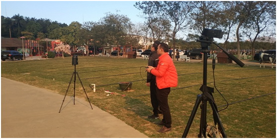 ▲華平保障人員跟隨拍攝森林消防撲救畫面