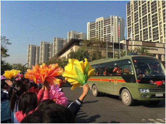 ▲高明人民熱情送別救火英雄