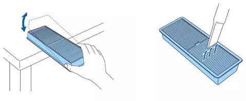3、輕拍空氣過濾器4-5下,或用柔軟的毛刷把灰塵撣掉,用真空清潔器清除剩余灰塵。