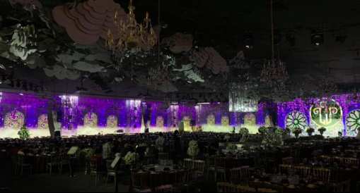 Long Vi Palace 大宴會廳的墻壁成為了一個巨大的投影畫布,以明亮、充滿活力的視覺效果吸引客戶和賓客,這在越南酒店行業是前所未有的。這款具有夢幻般視覺效果的 270 度光雕投影展示采用了 14 臺 科視 Christie HS 系列 1DLP® 激光投影機。