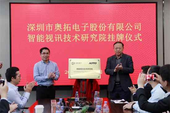 2月16日上午,奧拓電子舉行智能視訊技術研究院掛牌儀式,奧拓電子董事長兼總裁吳涵渠先生、奧拓電子智能視訊技術研究院院長吳振志先生共同為新成立的智能視訊技術研究院揭牌。
