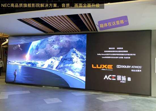 全部采用NEC激光放映機打造全激光影城,是周圍最豪華的影城。ACE無機房影廳放映解放方案非常特殊,將NEC恒溫箱體安裝在影廳之外,不僅最大化地節(jié)省用地空間,也給觀眾提供了極致化的觀影體驗。