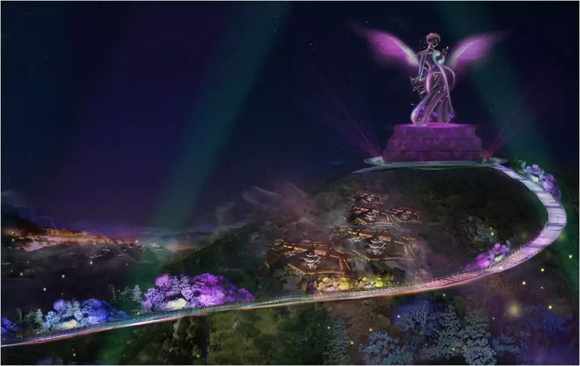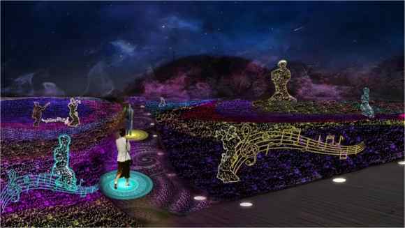 根據彝族民族的民間傳奇故事,以“神女下凡 淚花杜鵑——少女索瑪 唯愛抗爭——巾幗英雄 守護家園”的故事線展開,打造仙女散花的傳奇神像。將景區的景點劃分成三個區域:祭祀花神區、唯愛花都區、守護家園區,對祭祀花神、千層階梯、花神感知體驗館;同心廣場、二號廣場、河谷綠化帶、同心橋;守護驛道等景點進行獨特的設計。