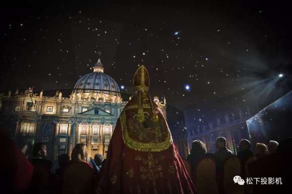 在禮堂內安裝30臺松下全高清激光投影機,利用虛擬手段讓觀眾感覺身處西斯廷教堂的中心。