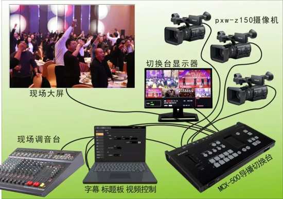 索尼MCX-500切換臺加Z150攝像機做網絡直播方案,它解決了傳統意義上人們認為現場導播系統復雜,設備昂貴,不易上手等問題。