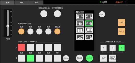 按鍵加液晶觸摸屏操控,支持多畫面監看、標題LOGO添加、特效轉換、網絡推流等功能,足夠滿足需求快速的現場直播制作環境,如現場音樂會、婚禮現場、大型會議、企業展示、課堂教育、情景劇等環境。