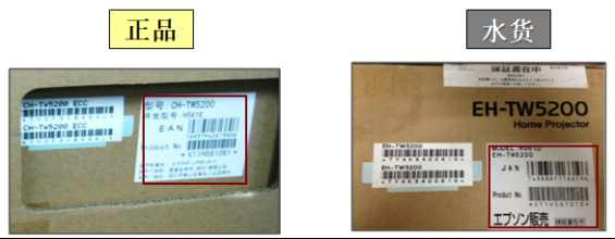 正品愛普生投影機,不僅僅可以通過機身來辨別真?zhèn)危鋵嵧队皺C的外包裝也大有文章。正品的愛普生投影儀機包裝和機身一樣貼有詳細清楚的中文標簽,而水貨投影機則是使用外文標簽。