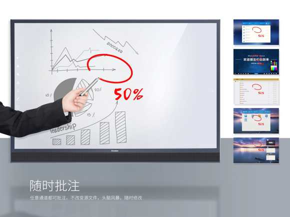 而對于時間就是金錢的互聯網行業,一個好的idea可能意味著一次新熱點的創造,而這種好的idea往往需要多次思想的碰撞,互聯網行業的會議往往伴隨著各種頭腦風暴。頭腦中簡單而抽象的想法如何表達、電腦里隨手勾畫的草圖如何展示、他人的觀點怎樣進行現場批注?這些都是互聯網行業的難題。Donview智能會議平板的白板功能可以隨時記下轉瞬即逝的靈感,勾畫屬于你的創意。同時大家在不改變原文件的情況下可以進行任意通道的批注,記錄在會議結束后通過掃描二維碼的形式進行會議記錄分享或者郵件形式發送會議記錄,一鍵清除你的創意就得到專屬保護。