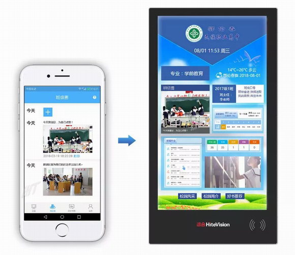 精彩紛呈的智慧課堂結束后,通過鴻合校園數字媒體發布系統,手機就可進行考勤統計、班級圈信息發布、即時消息插播、發布內容查詢等,非常便利。鴻合愛學班班,則徹底打破家長、老師針對學生學情的溝通屏障,家長和老師有不同適配的手機客戶端,下載注冊完成后,即可隨時溝通了解學生的成績及課堂表現等,清晰掌握學生近期的在校情況。