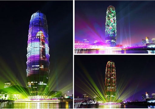鄭州“大玉米”跨年燈光秀項(xiàng)目由鴻合科技及華奧傳媒聯(lián)手打造,項(xiàng)目共采用36臺(tái)NEC PH3501QL+雙色激光工程投影機(jī),通過(guò)光影與樓體的完美融合,科技與藝術(shù)的激情碰撞打造的裸眼3D視覺(jué)奇觀,充分挑動(dòng)了觀眾的視覺(jué)神經(jīng),為跨年夜活動(dòng)增添了濃濃迎新氣氛。
