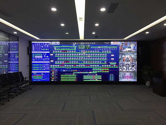 其實,金康新能源汽車智能工廠有一套嚴(yán)格的質(zhì)量檢測系統(tǒng),可以對每個生產(chǎn)環(huán)節(jié)嚴(yán)把產(chǎn)品質(zhì)量關(guān)。在這其中,一套以飛利浦BDL5588XC拼接成的 4×6的大屏幕拼接墻起到了關(guān)鍵的作用。通過這套飛利浦大屏幕顯示墻,重慶金康新能源汽車廠每輛汽車生產(chǎn)的基本信息、現(xiàn)場圖片以及最新監(jiān)測數(shù)據(jù)等都可以一一清楚的呈現(xiàn)于眼前。