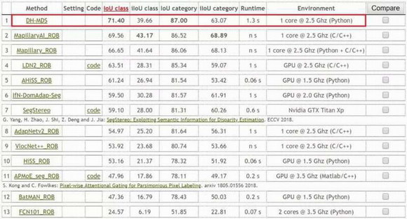 大華股份DH-MDS算法取得KITTI Semantic Segmentation排行榜第一名