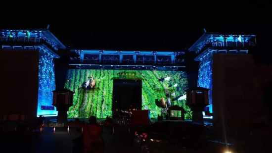 戶外投影由于投影面積大,受環(huán)境光等影響,必須選擇高流明投影機(jī),值得一提的是DP采用的M-Vision Laser 21000是為戶外投影秀而設(shè)計(jì)的高流明激光工程投影機(jī),其擁有紅藍(lán)雙色激光光源,亮度高達(dá)23000中心流明,內(nèi)置的ColorBoost色彩增強(qiáng)技術(shù)+紅色激光光源技術(shù)讓畫面更加鮮明艷麗,仿佛讓你置身一場(chǎng)真實(shí)的群雄爭(zhēng)霸場(chǎng)景中。低功耗加上高色彩精度使M-Vision Laser 21000更接近于三芯片DLP投影機(jī)。
