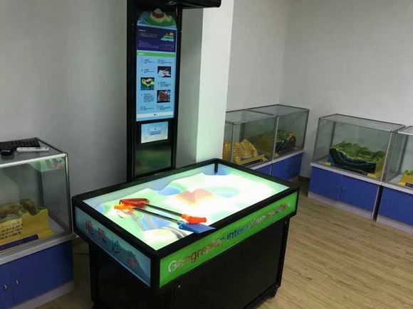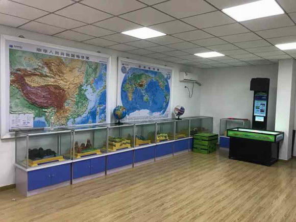 同時,教室中配備了兩塊中國、世界語音立體地形圖,配備無線點讀教鞭,電子教鞭裝有特殊攝像頭,可識別隱形底碼。配套音箱上的無線接收器收到無線教鞭發(fā)送來的碼值信息后,根據(jù)程序預先設置好的碼值與語音的對應關系,把相應的語音播放出來,對相應內容進行解說。