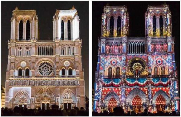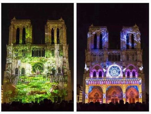 精彩變化的畫面將圣母院歷史的厚重感與現(xiàn)代虛擬現(xiàn)實技術的科技感完美的結合起來,配合建筑本身的結構線條和三維空間的立體透視感,觀眾們感受到了一場無與倫比,精彩絕倫的視聽盛宴!