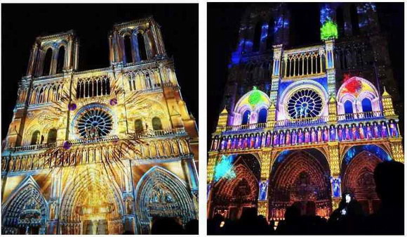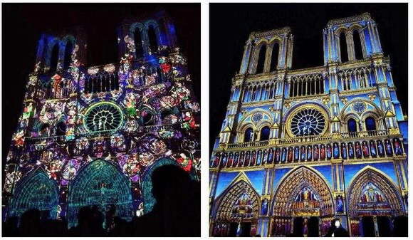 無論時代怎樣變遷,人們依然敬畏上帝,即便是無數(shù)次地毀滅與重生,也一樣向往美好的生命。燈光秀全程伴隨著管風琴的演奏和孩子們的純真虔誠的歌聲,蠟燭與光影、星光匯集在一起,為巴黎圣母院披上璀璨耀眼的外衣。