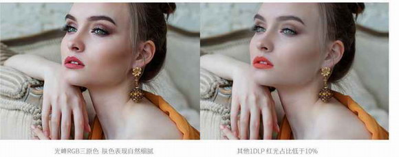 另一個影響色彩表現(xiàn)的重要指標是紅光占比。大部分DLP激光投影機紅光占比只有7%不到,紅色畫面表現(xiàn)暗淡,基于ALPD技術和RGB三段色輪技術,光峰S系列的紅光占比達到16%,達到TI推薦的顏色表現(xiàn)好的標準,紅光占比高,紅色表現(xiàn)不偏色,人物膚色更自然,畫面細節(jié)表現(xiàn)更為細膩。