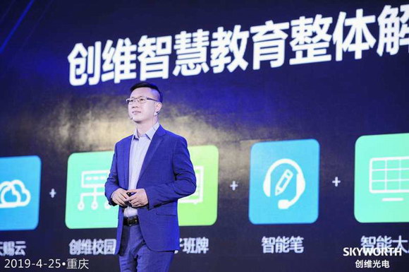 高科宣布了創維光電智慧商顯戰略升級,他在接受記者采訪時表示:“我們深諳各類行業痛點,創維光電依托優質硬件,核心模塊架構,云端服務等核心優勢,推出智慧教育、企業服務、行業顯示、消費級交互終端四大解決方案”。