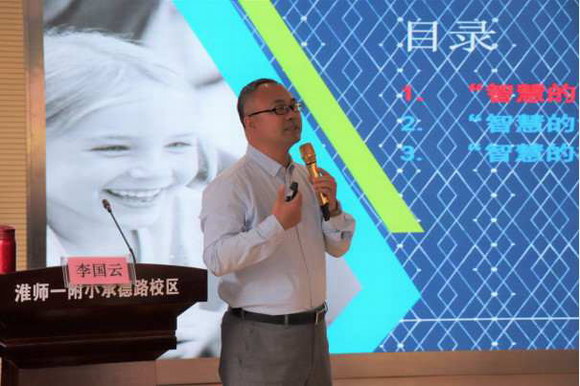開場環節,楊軼館長作致辭。他表示,在教育信息化上要從建立新理念、培養新隊伍、特色新發展三個方面下功夫,希望承德路小學通過智慧課堂研討活動推動“智慧校園”創建工作,真正讓技術進課堂、進校園,服務師生,提升學校的知名度、美譽度,推動學校高水平發展。