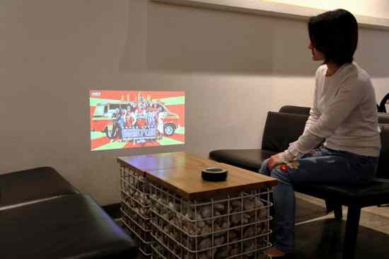其次,這款投影的設計比較時尚,非常的小巧,放到女生的小包包里就能帶出去。并且還給配備了5000毫安的內置電池,這就便攜了很多,可以走到哪兒看到哪兒,前提是有網絡的情況下哦。電池支持使用時間是90分鐘左右,時間上略微有點短,不過也能看一部電影(復聯4除外哈~)。