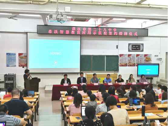 簽約儀式上,陳志興校長說到,教育信息化是現代教育的重大變革,智慧教育取代傳統課堂模式,這是一場深刻的“課堂革命”。近年來,湛江市第二十八中學把教育信息化建設作為提升教育質量的重要抓手,把智慧教育的應用與研究作為學校發展的重要戰略,從人員、經費、設施建設等方面給予充分保障,以重點推進智慧課堂為基礎,以傳統課堂與智慧課堂深度融合為核心,以創新應用為重點,以引領示范為抓手,以提高質量為根本,依托智慧課堂推動教育教學創新性發展。