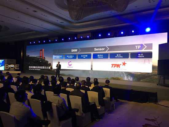 TPK謝立群執行長,于京東方舉辦的“交互式電子白板解決方案發布會”上,報告TPK和Cambrios的納米銀觸摸屏解決方案